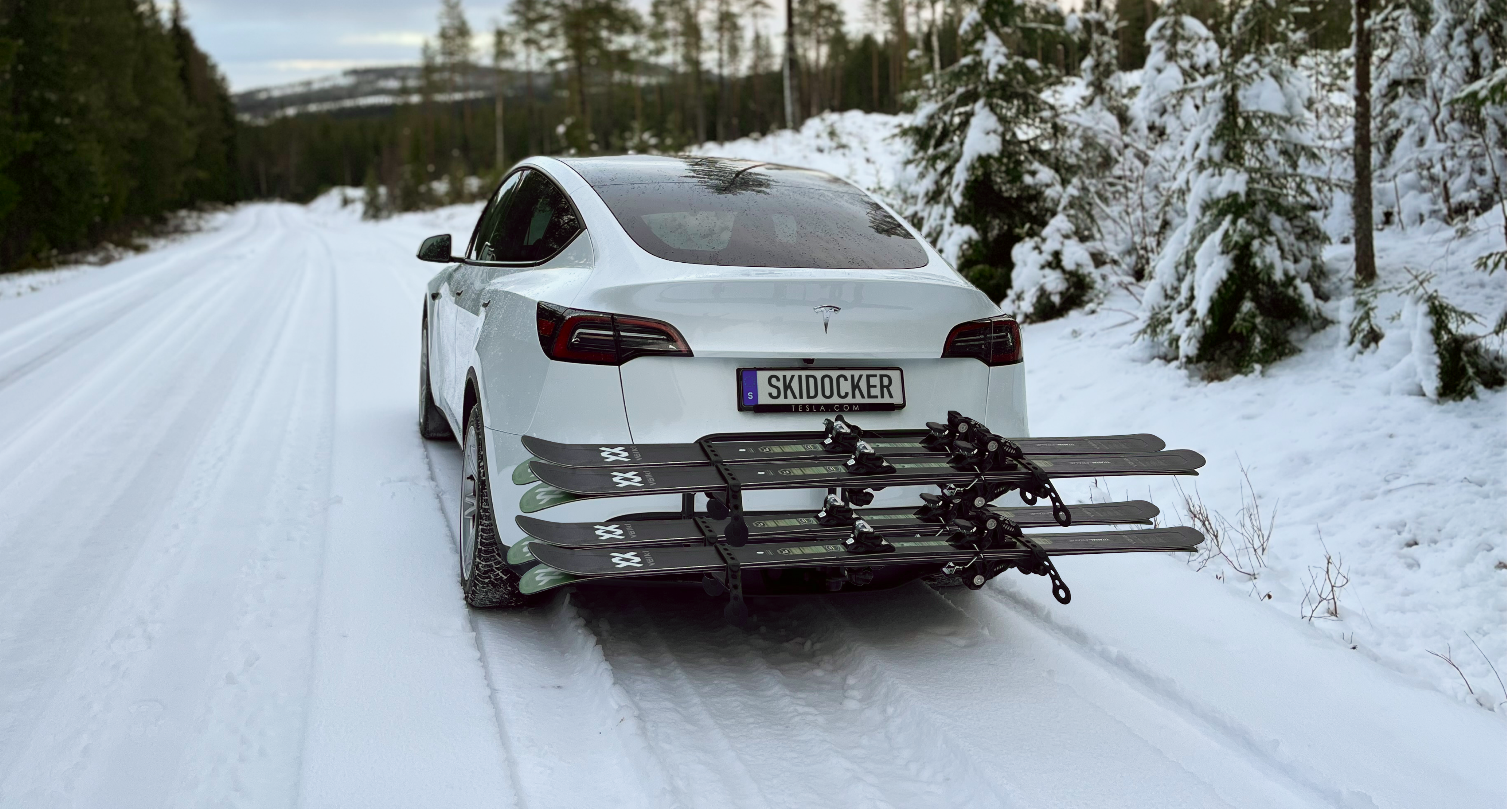 Skidocker keeps your skis behind the car, helping you avoid range anxiety while reducing energy usage and maximizing your EV’s range. Modern vehicles like Tesla Model Y offers plenty of cargo space so the need for roofbox is minimal. Skidocker lets you transport your skis in a swift way optimizing the cargo space inside the vehicle for other skiing gear.